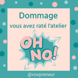 Cet atelier vous a été offert dans le cadre de la formation Voxpreneur, dans laquelle j’accompagne les coachs et thérapeutes à oser présenter leur activité, parler de leurs offres et incarner leur statut d’entrepreneur.